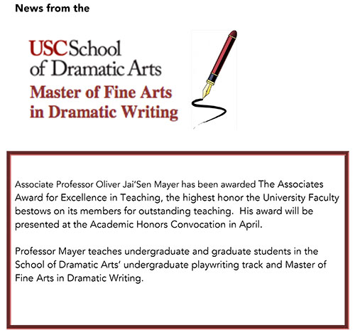 Oliver Mayer is a tenured professor of dramatic writing, associate dean of strategic initiatives and associate dean of faculty at the USC School of Dramatic Arts.