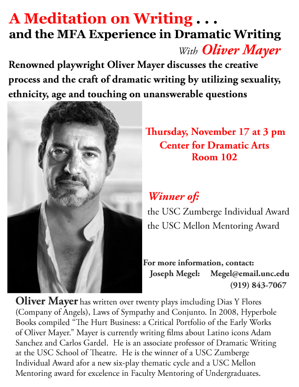 Oliver Mayer is a playwright, poet and librettist, the author of more than 30 plays, from his ground-breaking boxing play Blade to the Heat and its long-awaited sequel Members Only, to new plays Ghost Waltz , The Dragon Tree, and Letters from the Black Sea, and Like as the Hart . Other produced plays include Blood Match and Yerma in the Desert, inspired by the plays of Federico Garcia Lorca; Fortune is a Woman, The Wallowa Project, Dias y Flores, Dark Matters, Conjunto, Young Valiant, Joy of the Desolate, The Sinner from Toledo, Laws of Sympathy and Ragged Time. Mayer also wrote the libretto for the opera 3 Paderewskis, which received its world premiere at The Kennedy Center, as well as the libretti for America Tropical and musicals Amour Fou and Blue House. He writes essays regularly for Zocalo Public Square and has written a book of poetry entitled Body Languages. He also wrote the children’s books Big Dog on Campus Learns to be a Trojan, and its follow-ups Big Dog on Campus Goes to the Library and Big Dog on Campus Goes on Patrol.
